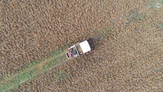 △2021年11月3日,在位于山东省东营市的黄河三角洲农业高新技术产业示范区,工人正操控机械开镰收割东航D11号航天大豆。