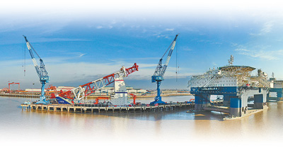 全球首艘140米级打桩船“一航津桩”在振华重工江苏启东海洋工程码头正式交付。许丛军摄(人民视觉)