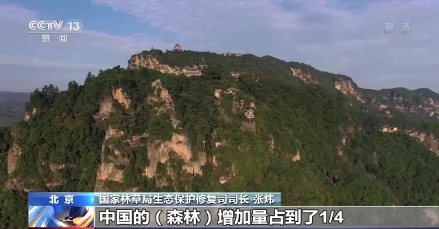 国家林草局生态保护修复司司长 张炜:2019年,美国航天卫星拍摄的结果,就是在近20年期间,地球在逐步变绿,中国的(森林)增加量占到了1/4,位居世界第一。