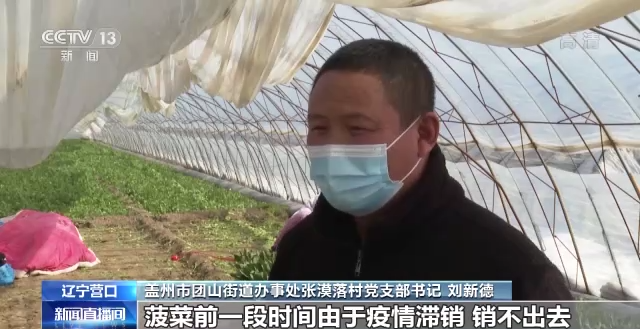 盖州市团山街道办事处张漠落村党支部书记 刘新德:我村种菜户数300多户,这个时期的主产菜就是菠菜,菠菜前一段时间由于疫情销售不出去,我们找镇政府领导协调,现在来了不少外地车。
