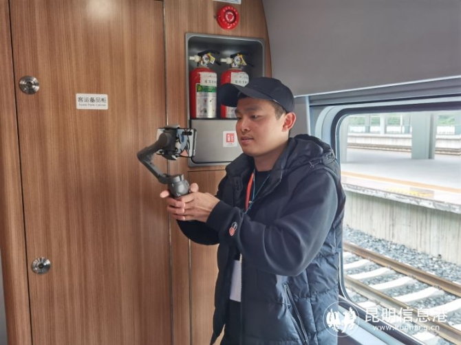 来自老挝的留学生闻鹏宇也感受到了“移动速度”。在列车行驶过程中,他使用网络进行视频直播,流畅地将中老铁路上的所见所闻分享给远在老挝的朋友。