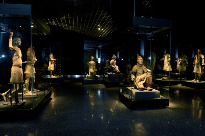 西安秦始皇帝陵博物院举办的“真彩秦俑”展览现场(2014年11月21日摄)。新华社发(张天柱 摄)
