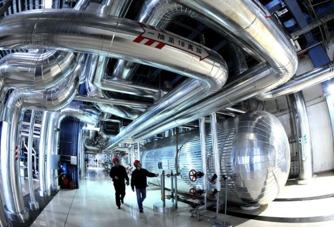 天津国投北疆电厂海水淡化项目车间内,工作人员在观察运行中的高压热水装置(2010年3月7日摄)。新华社记者 刘海峰 摄