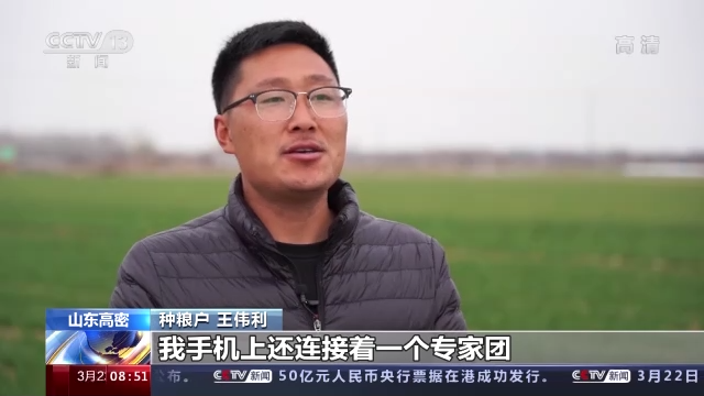 山东高密市种粮户 王伟利:现在不是我一个人在种地,我手机上还连接着一个专家团。根据他们的指导,在冷空气来临之前,我早就给小麦浇上了水,土地没有裂缝,冷空气就进不去。
