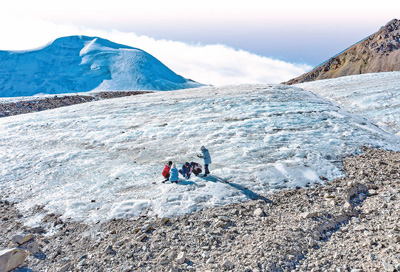 第二次青藏高原综合科学考察研究队在进行拉萨河1号廓琼岗日冰川环境考察。