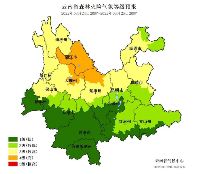 当前正值我省春耕春播关键期,近期全省森林火险气象等级持续偏高,部分地区已达到5级,昆明、大理、丽江、怒江等地发生多起森林火灾。