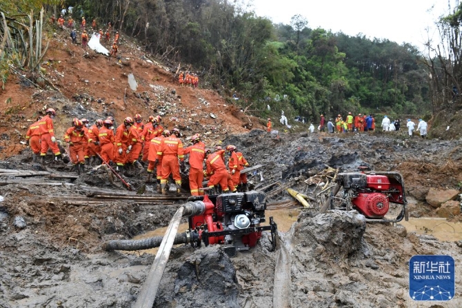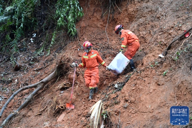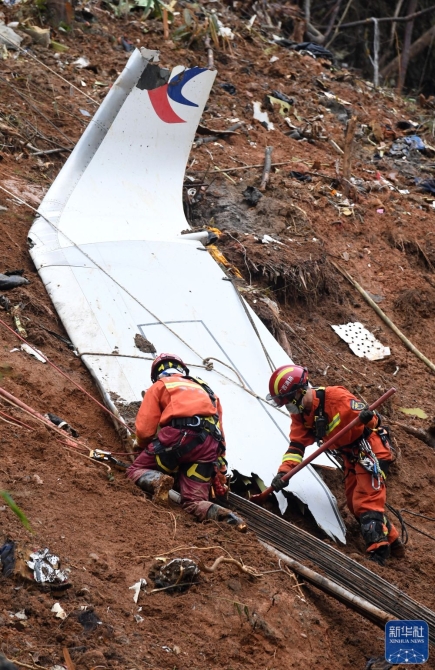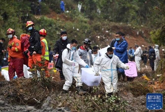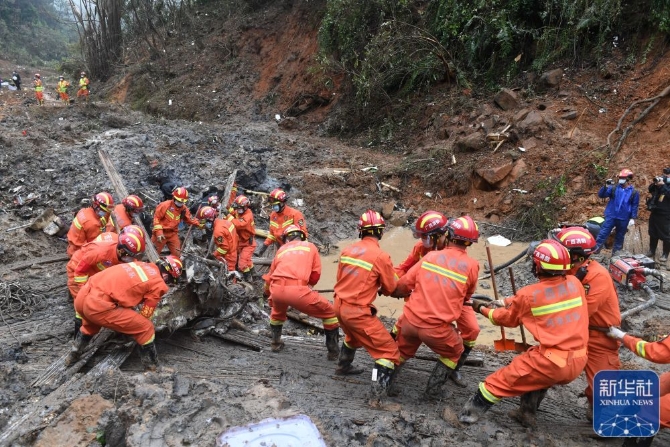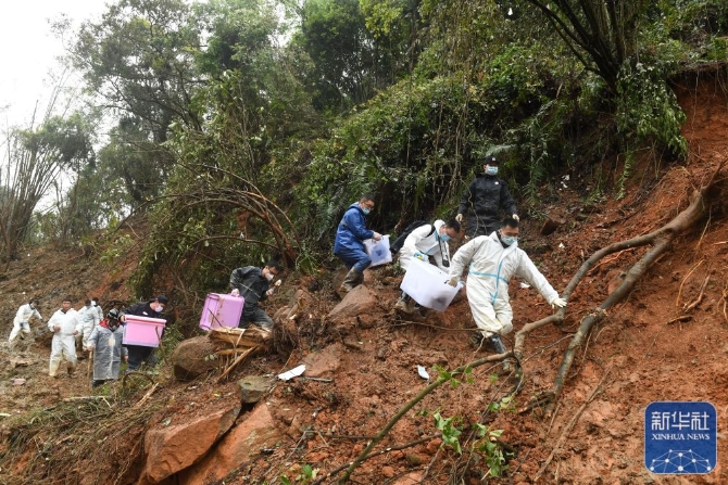 3月24日,藤县空难搜寻工作持续展开。搜救人员在广西梧州藤县事故核心区继续搜寻失事飞机的另一个飞行数据记录仪(黑匣子)和相关残骸。(新华社 记者陆波岸)