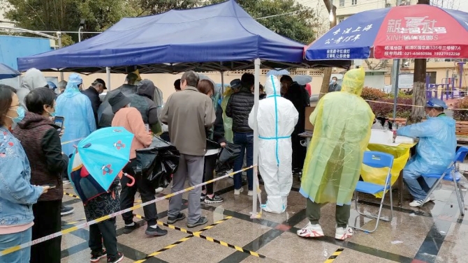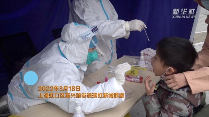 从上海的杨浦区到虹口区,再到徐汇区,新华社记者走进上海的三个居民社区和核酸检测点,用镜头记录下了一线基层社区工作人员、医护工作者和志愿者“战在‘疫’线”的点点滴滴……