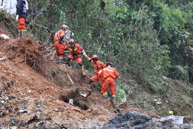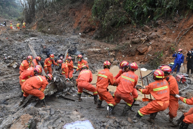 3月24日,搜救人员在广西梧州藤县空难事故核心区继续搜索。新华社发(中国民航报供图)