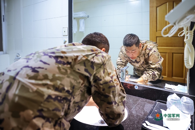 中转的新兵分配房间入住后进行洗漱。李义 摄