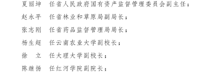 省国资委、省市场监管局、省林草局,云南农业大学、大理大学、红河学院、云南技师学院(云南工贸职业技术学院):