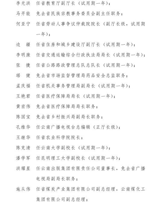 省政府办公厅、省教育厅、省民族宗教委、省人力资源社会保障厅、省住房城乡建设厅、省交通运输厅、省市场监管局、省乡村振兴局、省机关事务局、省医保局,省农科院、省广电局、云南广电台,云南大学、昆明理工大学,云南出版集团有限责任公司、省煤炭产业集团有限公司、云南煤化工集团有限公司、省工业投资控股集团有限责任公司: