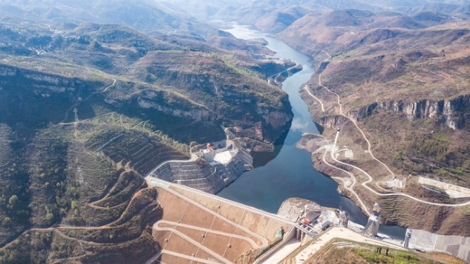 这是3月15日在甘肃省酒泉市疏勒河灌区拍摄的昌马水库。新华社发(甘肃省疏勒河流域水资源利用中心供图)