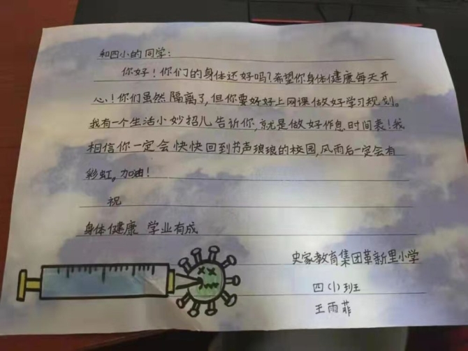 同龄人致隔离小伙伴的一封信,“隔空”传递着关心和关爱。(受访者供图)