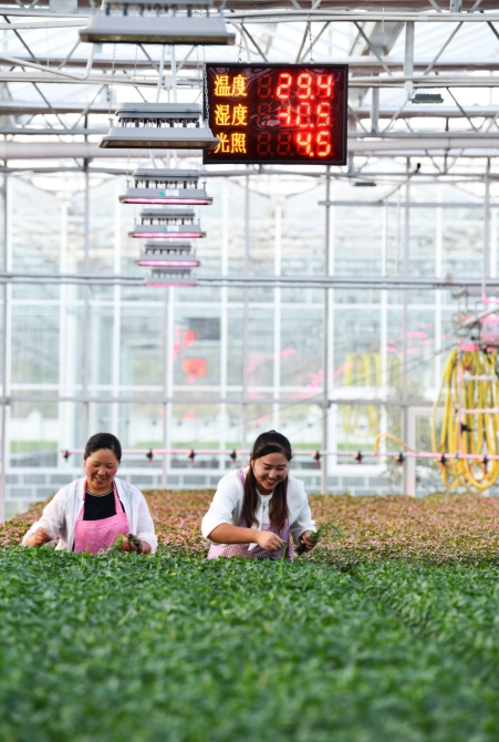 在贵州省榕江县车江坝区智能化育苗中心大棚,农技人员在调节棚内温度(2月18日摄)。新华社记者 杨文斌 摄