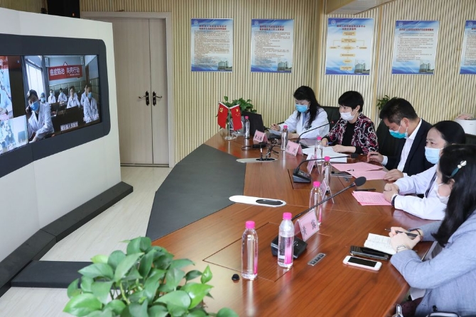 专家团队在贵州省人民医院远程会诊中心与全省34家医联体医院进行“疫情之下,共话抗癌防癌”的讨论(2020年4月16日摄)。新华社记者 欧东衢 摄