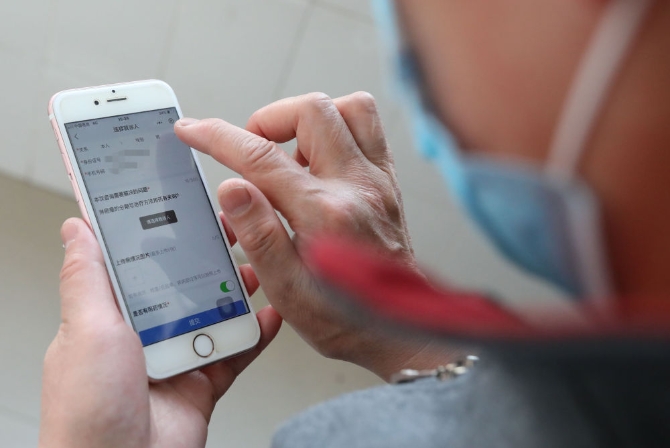 患者家属在贵州省人民医院通过“云诊疗”系统在线提问(2020年4月16日摄)。新华社记者 欧东衢 摄