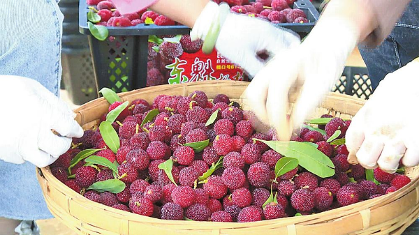 最近,石屏县坝心镇的杨梅开园,新鲜的特早优质杨梅以每公斤120元的价格俏销全国。