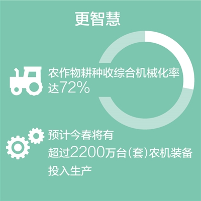 大数据驱动“新农具”更显神通,高科技为春耕保驾护航。当前,全国农作物耕种收综合机械化率达72%,预计今春将有超过2200万台(套)农机装备投入生产。