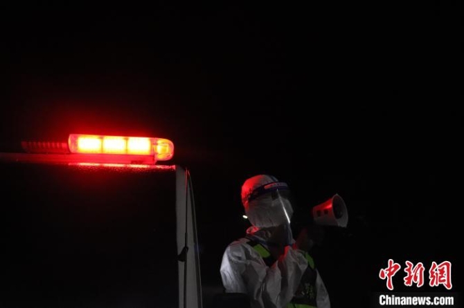 遇到群众询问疫情的相关情况,街面巡逻封控组的民辅警们都会一一耐心解答,化解群众心中的疑虑不安,他们不停歇地利用巡逻车上的喊话器提醒群众戴好口罩,不要聚集,按时进行核酸采集。