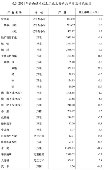 全年规模以上工业粗钢产量2361.04万吨,比上年增长5.7%;钢材产量2646.44万吨,增长0.2%;十种有色金属产量571.55万吨,增长11.8%;水泥产量11436.85万吨,下降11.9%;卷烟产量706.87万箱,增长0.5%;成品糖产量246.22万吨,下降5.7%。