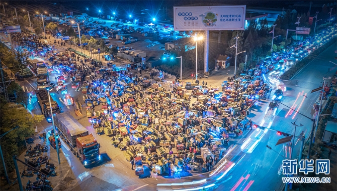 凌晨的花卉交易市场热闹非常(资料图)。新华网发(晋宁区融媒体中心 供图)