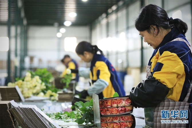 包装鲜切花(2月25日摄)。新华网 邢苏蓉 摄
