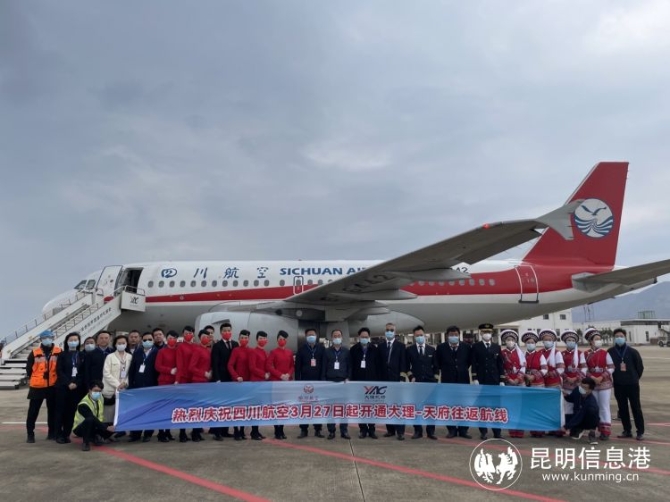 27日09:30,由成都天府机场飞往大理的3U6695航班平稳落地,这是川航首次执飞大理航班,大理机场以民航最高礼仪“过水门”仪式迎接川航飞机的到来。10:25,3U6696由大理荒草坝机场平稳起飞,11:46到达成都天府机场。16:00,当天第二条新开航线3U8233昆明—兴义—铜仁由昆明长水国际机场起飞,飞往铜仁凤凰机场。
