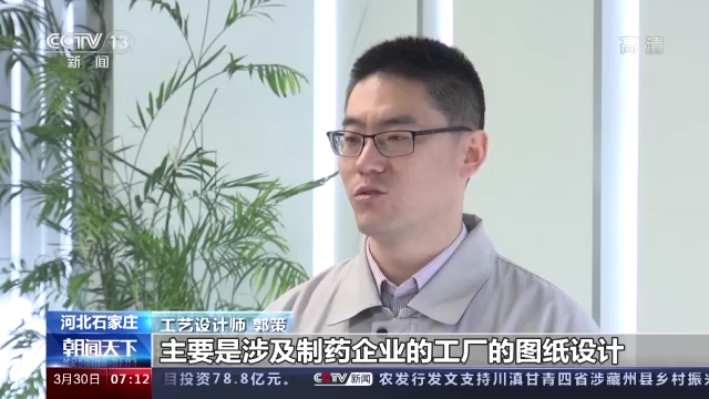 工艺设计师 郭策:像我们做的这个行业,主要是涉及制药企业的工厂的图纸设计,以及说给他们做一些配套的服务。我这个专业来到这边,其实就业面还是比较广的。