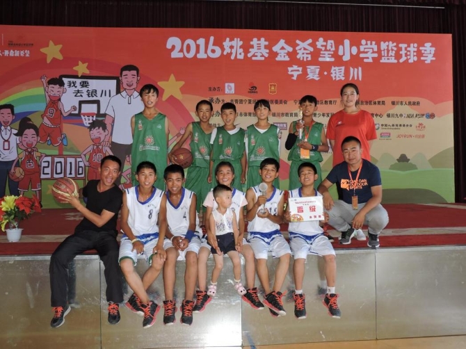 我带着孩子一起训练,孩子们很努力,训练不怕吃苦,有拼劲。2016年,姚基金希望小学篮球联赛在银川九中设了赛点,我就带着孩子们去打比赛,那场比赛孩子们打得特别好,先是初赛出线,到后来以宁夏赛区第一名的成绩进入了全国赛,到最后获得了全国亚军。