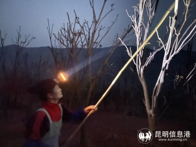 从3月初开始,每天凌晨4点,姜萍和她的爸爸妈妈就会拿着几个筐和1米多长的竹竿铁钩,戴着头灯,下地里“采椿”。
