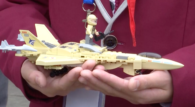 拼出了一架歼-15战机模型