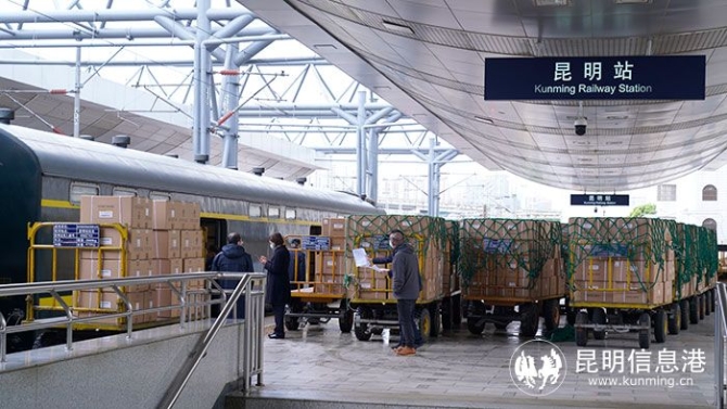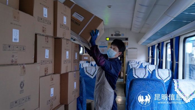 昆明信息港讯 记者上官艳君 记者从中国铁路昆明局集团公司获悉,4月1日上午10时,装有云南省首批捐赠上海市防疫药品的Z288/9次列车,从昆明站发出,满载云南人民深情的药品将助力上海疫情防控。