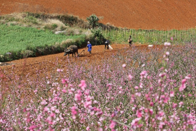 农人在春光满盈的华夏大地