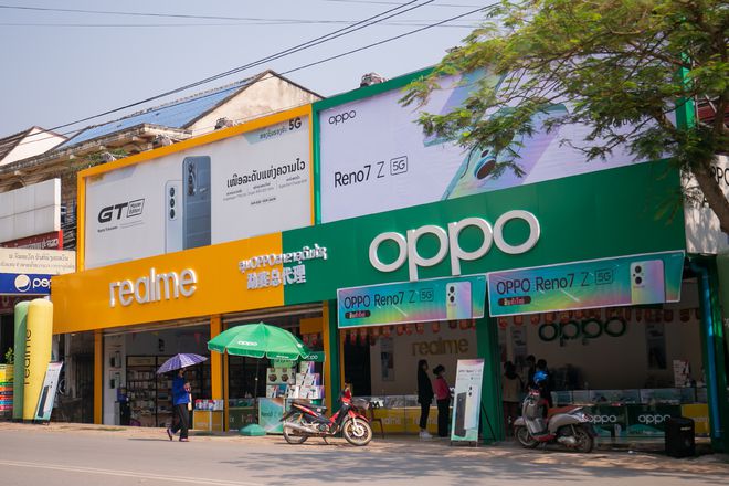 这是3月11日在老挝北部孟赛拍摄的一家中国品牌手机经销店。新华社发(凯乔/摄)