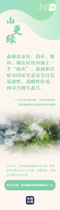 今年植树期间,总书记勉励大家,同建设美丽中国的目标相比,同人民对美好生活的新期待相比,我国林草资源总量不足、质量不高问题仍然突出,必须持续用力、久久为功。