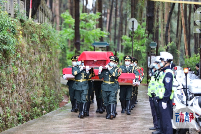 随后,33名礼宾踏着整齐的步伐将烈士棺椁安放到位、封盖安葬。参加活动人员向烈士敬献鲜花,告慰先烈,寄托哀思。