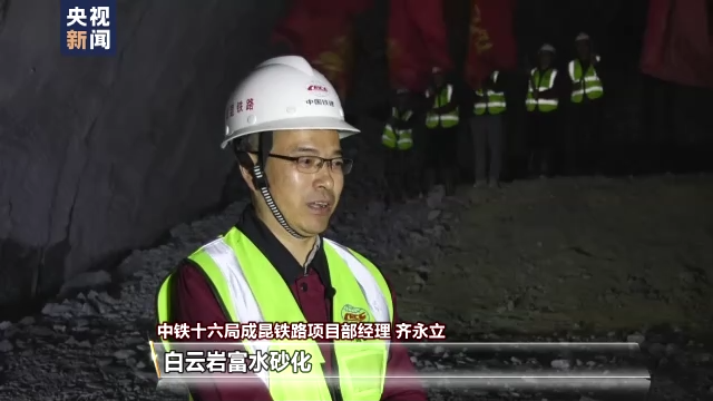 中铁十六局成昆铁路项目部经理 齐永立:为有效应对世界级难题——白云岩富水沙化,我们采取精准探水,靶向泄水、分水减压,注浆堵水等不同方式的水处理措施,实现了隧道快速施工,同时保证了质量安全。