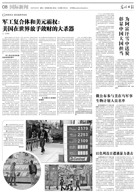 俄乌冲突爆发以来,西方国家对俄制裁导致全球大宗商品价格飙升,使本已遭受疫情冲击的世界经济雪上加霜。更为重要的影响是,和平与发展的时代主题遭到破坏,各国陷入对战争的恐惧当中。与此同时,美国通过各种方式不断对冲突浇油拱火,其“和平捍卫者”的面具已掩饰不住大发战争财的真实面目。