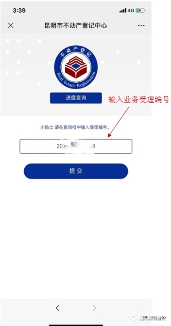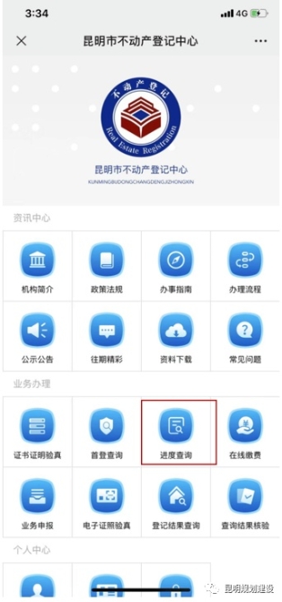 为满足广大市民群众对于业务办理进度的查询需求,进一步提升服务质量,昆明市不动产登记中心在“昆明不动产”微信公众号上开通了业务办理进度查询功能,申请人向不动产登记机构线上和线下申报登记时,只需要关注“昆明不动产”微信公众号,相关登记业务办结后,就会收到公众号推送的办证进度信息,让您第一时间知晓办证的情况