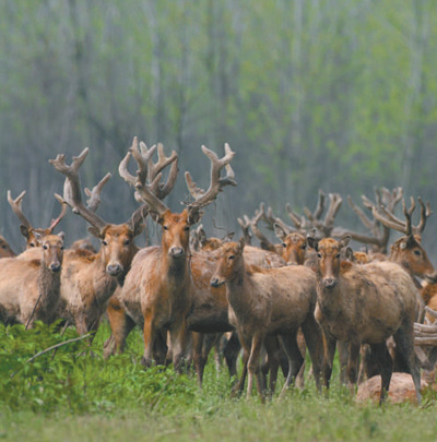 湖南东洞庭湖国家级自然保护区内的野生麋鹿群。姚 毅摄