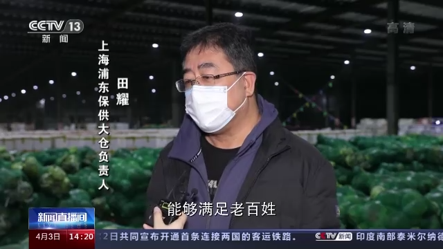 上海浦东保供大仓负责人 田耀:这个大仓整体面积是12000多平方米,整体的存储量可以达到1500吨左右。这个仓我们主要保证浦东(封控)这一段时间内,能够满足老百姓日常农产品的基本需求。整个储存了400多吨的货,大的20吨到30吨的卡车川流不息没停过。