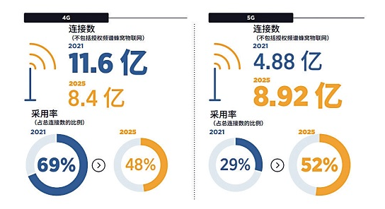报告指出,到2025年底,5G将占中国移动连接数的52%;2021年,移动技术与服务创造了9000亿美元的经济价值,占国家GDP的5.6%,预计到2025年,这一数字还会增长约660亿美元。
