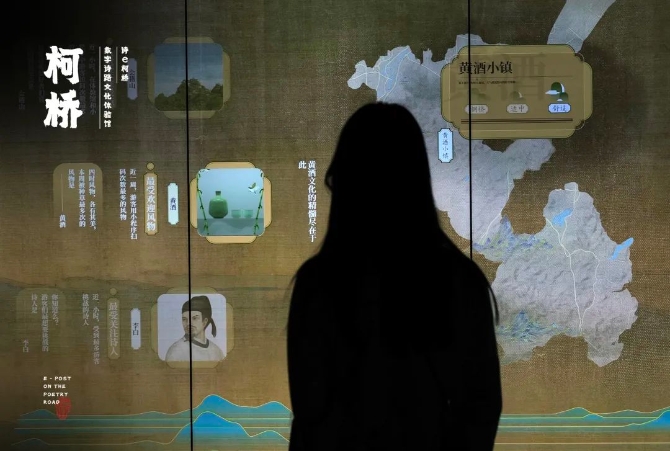 诗e柯桥·数字诗路文化体验馆是一座数字之馆、互联之馆和科技之馆。该馆依托持续生长的文旅大数据平台,采集了大量诗词、地方志、名人名画等文化数据,同时整合了景区流量、气象、交通等旅游数据,同时串联起数十个数字展项,展项内容由此可以推陈出新。十多个灵动活泼的数字展项,用互动技术重现盛世人文,让唐诗可看、可听、可感知。唐诗和诗人成了景点的绝佳注脚,文化理由将成为游客的打卡新动力,古人行迹也将成为新名胜。