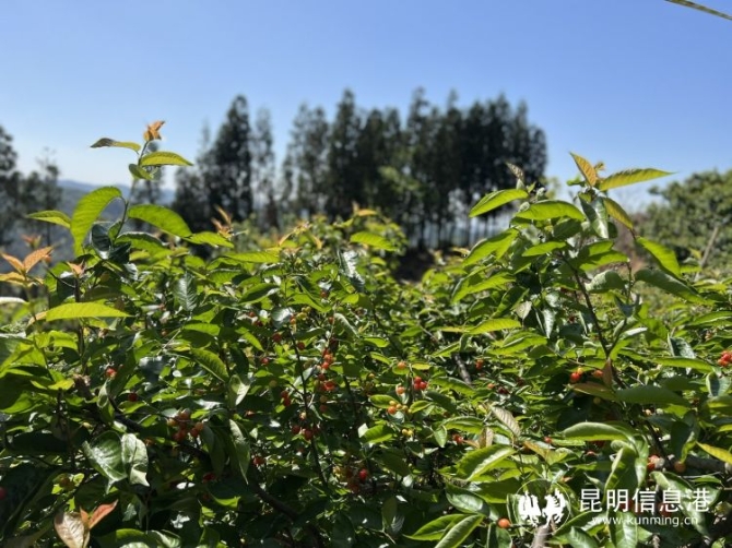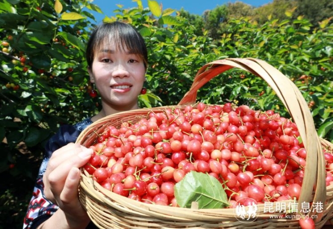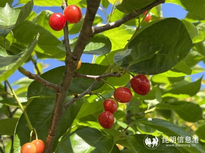 昆明信息港讯 记者李莹 刘莹 “枝头新缀璎珞珠,一树樱桃栏晴昊。”每年春天,粒粒鲜红、酸甜可口的樱桃是昆明人不会错过的舌尖美味。清明刚过,宜良县北古城镇米户村近万亩樱桃已经鲜红挂果。全市少见的“红玛瑙”樱桃是米户樱桃的一大特色,眼下头水樱桃售价稍高,价格40-50元/公斤。4月中下旬是米户樱桃盛果期,鲜果售价将回落至20元/公斤左右,入园游玩免入园费。