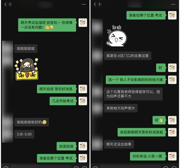 今天一早,增援静安区方舱医院的上海市公安局静安分局党员民警张斌,便通过微信为小姑娘打气,鼓励她不要被疫情影响,考出好成绩。“谢谢警察哥哥。”刘轩伶俏皮地回复了一个“加油”的表情。