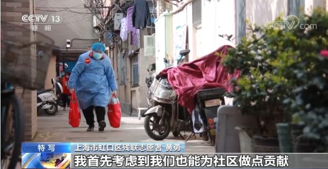 上海市虹口区残联志愿者 张礼煊:目前的情况还是比较困难,大家可能也觉得有点无助。我觉得如果有一个志愿者,当他还在逆行的话,当你看见还有人在帮助他们的时候,我觉得会给他们很强的抵抗疫情的信心。