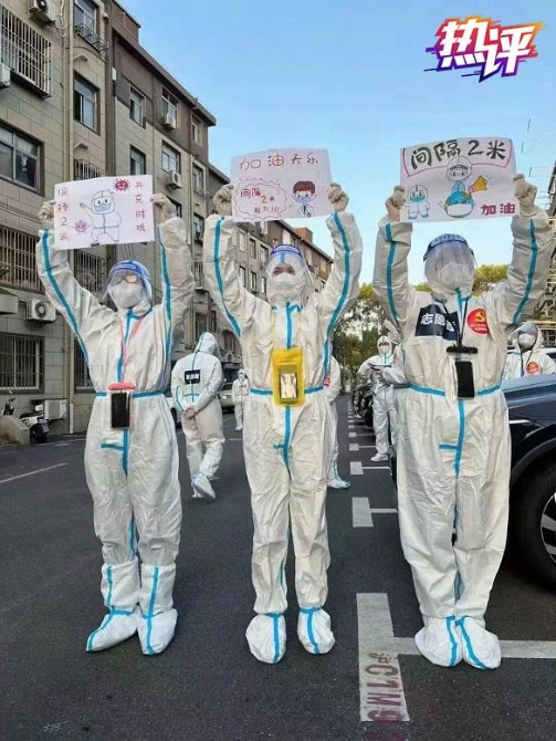 目前,已有15个省份调派医务人员3.8万余人和每日238万管核酸检测的能力支持上海,这个过程中充满了团结与温情。有位来自普陀上河湾的网友拍摄了一段视频感谢来自浙江金华的医护人员,视频里,楼上此起彼伏都是居民们“谢谢”的声音,小区步道里则是准备离开的医护人士,不停地挥手、点头向楼上致意。这些小插曲,无不舒缓着人们的紧张情绪,营造起勇敢乐观的抗疫氛围。