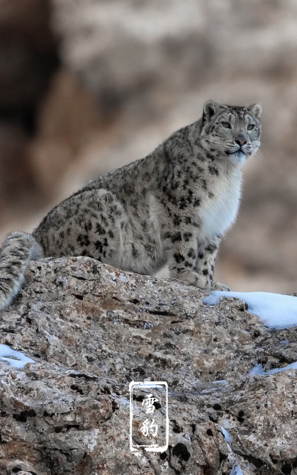 ↑2018年4月14日,一只雪豹在位于青海省内的一处山脊活动。