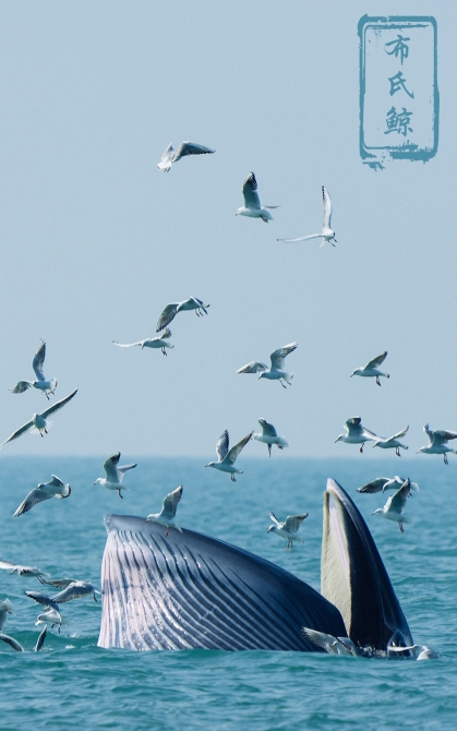 ↑2021年1月15日,一头布氏鲸在广西涠洲岛海域捕食。